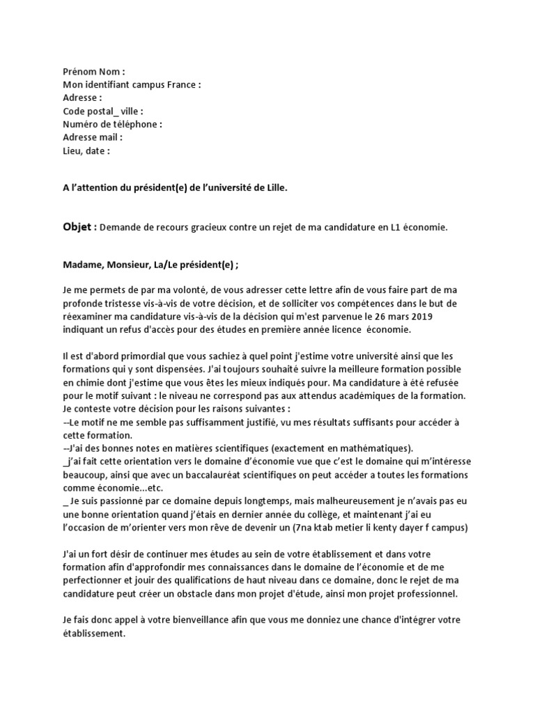 Droit, economie… ✅ exemple de lettre gratuite à télécharger. Pour les étudiants (marocains, algériens, tunisiens, égyptiens ou qui appartient à l'afrique qui veulent continuer vos études en france et avoir un visa étudiant). Via le réseau campus france, sous certaines conditions. Vous pouvez utiliser cette lettre de motivation faculté d'économie et gestion pour l'envoyer par la poste par votre propres moyens (en. Certaines formations proposées à l'université peuvent être très demandées et.