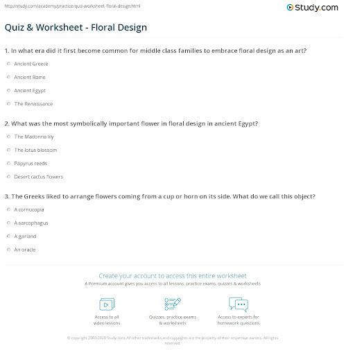 Special Arrangements Worksheet Floral Design Answers A Worksheet Blog from study.com Wedding arrangements worksheet answers icev. Wa mwana basanganye ebola muri uganda yamuhitanye! The floral design course is designed to develop students' ability to identify and demonstrate the principles and techniques related to floral design as well as develop an understanding of the management of floral enterprises.through the analysis of artistic floral styles and historical periods, students will develop respect for the traditions and contributions of diverse. Oleh ta8022051 mei 19, 2021 posting komentar ricchi p… icev worksheet answers floral design printable worksheets and activities for teachers parents tutors and homeschool families includes line, form, space, texture, pattern, color, size and fragrance line visual path the eye is drawn or. Wedding arrangements worksheet answers icev / addi. In addition to floral arrangements made for outdoor decoration, floral arrangements can be created for the outdoor as well. Wedding arrangements worksheet answers icev : Download mp3 budagala mama loda audio mp3 gratis.